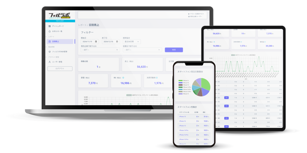フィルラボは単体でインターネット通信が可能なため、クラウドベースの管理システムを通じて遠隔管理が行えます。これにより、無人店舗での展開も容易になり、注文管理やアフターセールスメンテナンスを含む各種ステータスの確認が可能です。リアルタイムでの状況把握や運用管理が、スマートフォンやPCから簡単に行えます。
